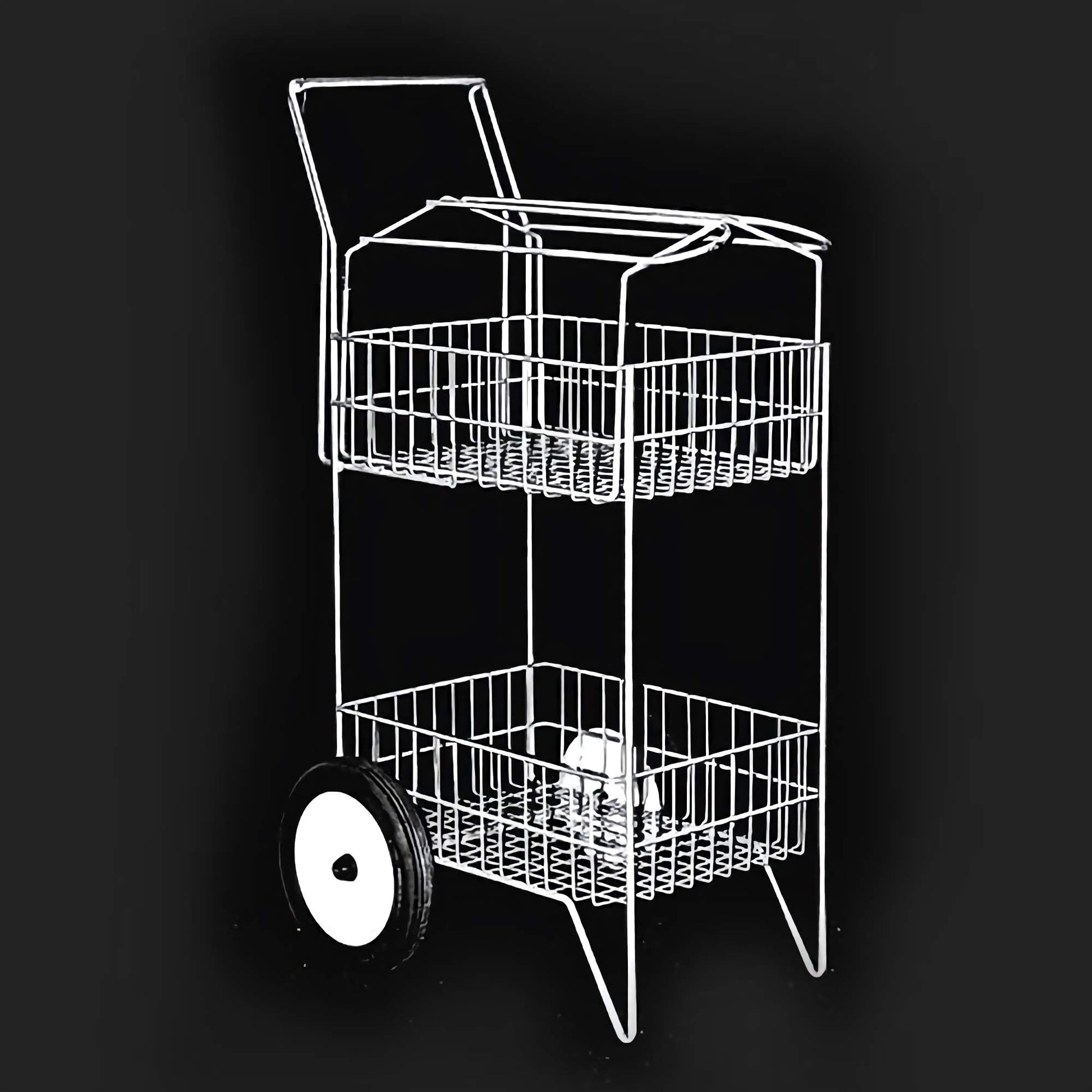 Our handy dandy Rolling Basket is one of our most popular products to date. The Rolling Basket features two roomy and sturdy, 18"L x 13"W x 8"D baskets. The Rolling Basket is great for toting all your tack and grooming supplies. One-piece construction and quality, hard rubber tires make the Rolling Basket extremely durable. Made from 3/8", 1/4" & .148" diameter wire and is powder coated to guard against rust and corrosion. It measures 40"H x 19"W x 24"D. Add our Rolling Basket Insert to transport your Western or English saddle effortlessly or add our Rolling Basket Insert for a 3rd basket. (Saddle Rack Insert and Basket Insert are sold separately)